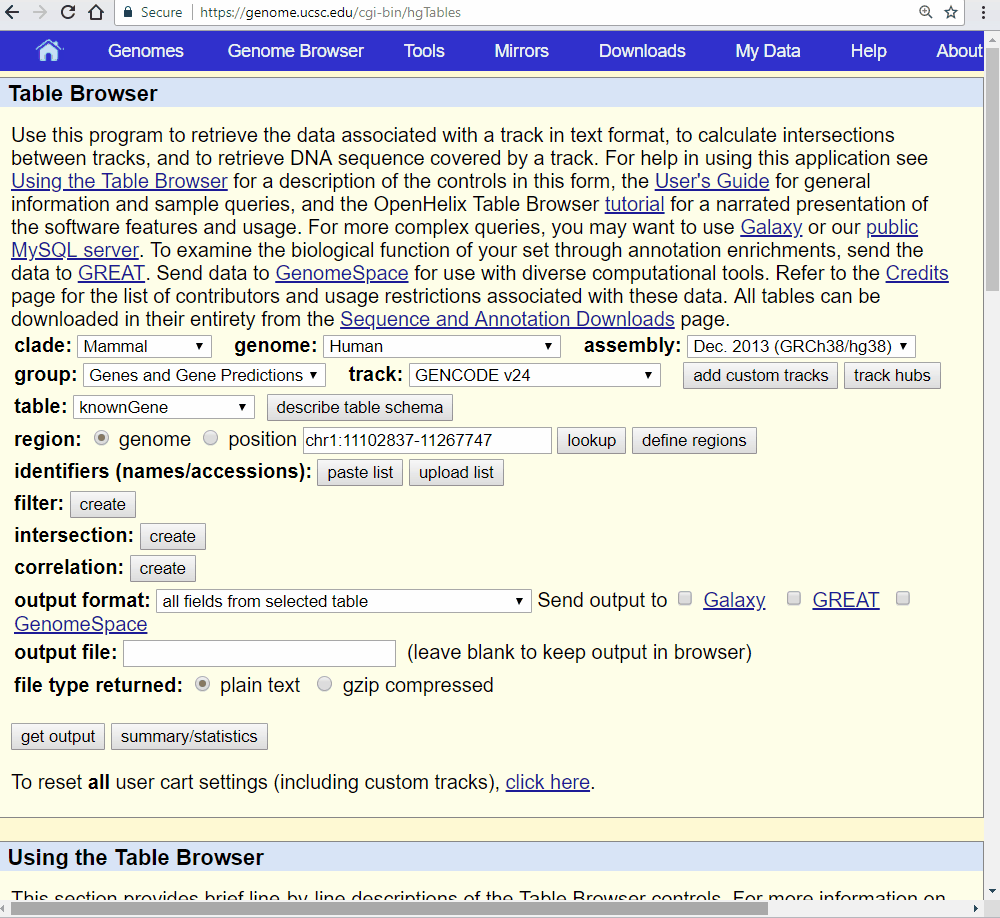 - First step: In the UCSC table browser, choose the correct genome you need, set